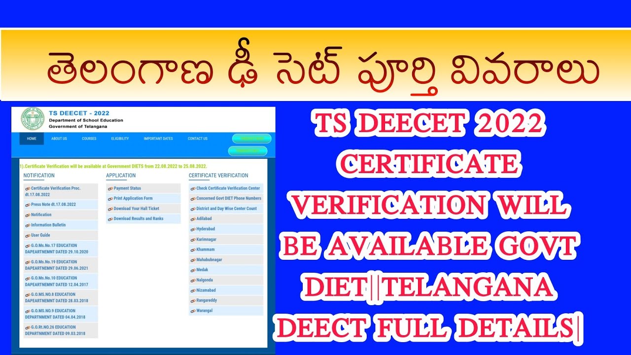 ||TS DEECET 2022 CERTIFICATE VERIFICATION WILL BE AVAILABLE GOVT DIET||TELANGANA DEECT FULL DETAILS| VideoResults 0 Share FacebookTwitterGoogle+ReddItWhatsAppPinterestTumblrEmail Check on YouTube diet result 2022 0 Share FacebookTwitterGoogle+ReddItWhatsAppPinterestTumblrEmail